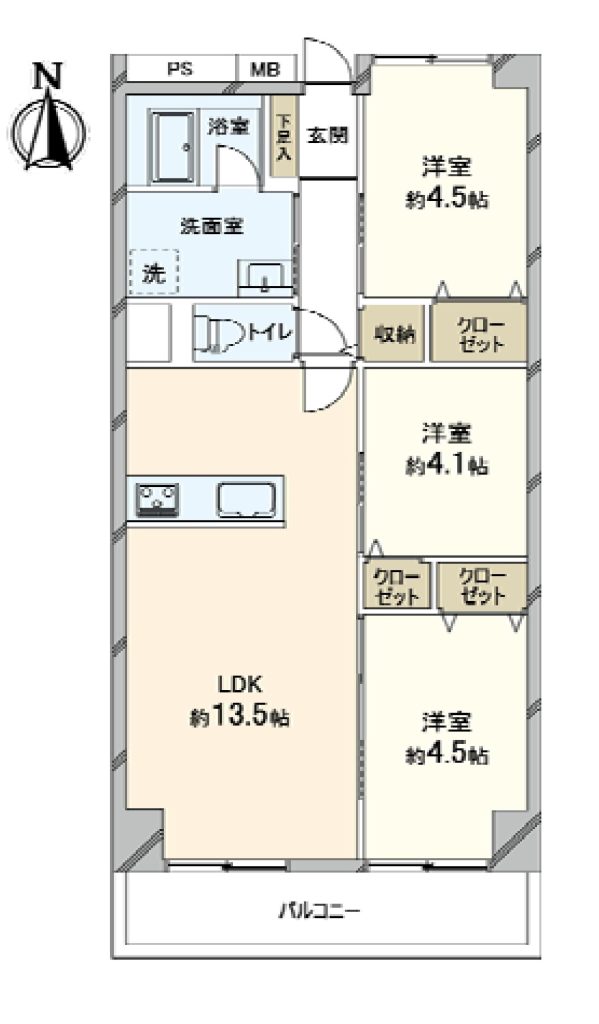面積 | 66.43m² | 計測方式 | 壁芯 |