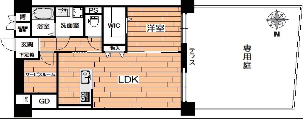 | 設備・条件 | 自治会費 年額3,600円 トランクルーム付き 月額500円 専用庭 39.69㎡ |